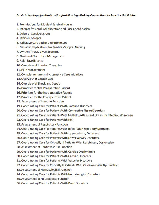 Test Bank Davis Advantage for Medical-Surgical Nursing: Making Connections to Practice 3rd Edition