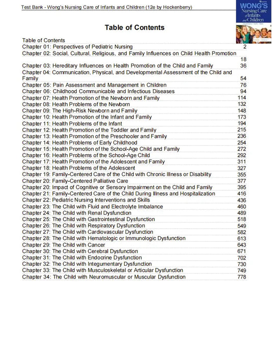 Test Bank Wong's Nursing Care of Infants and Children 12th Edition by Hockenberry