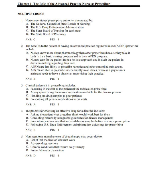 Test Bank Pharmacotherapeutics for Advanced Practice: A Practical Approach 5th Edition