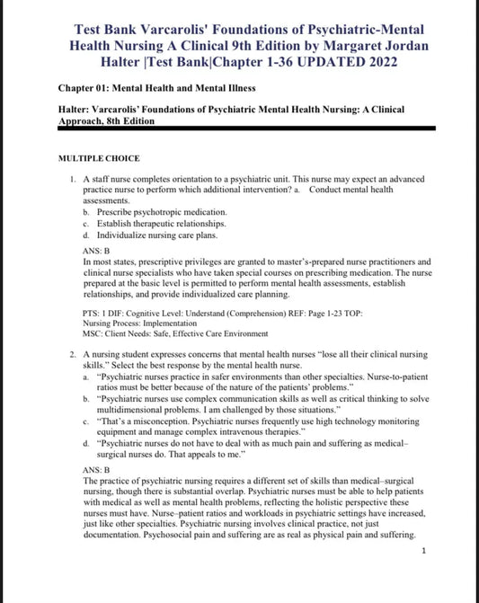 Test Bank Varcarolis’ Foundations of Psychiatric-Mental Health Nursing 9th Edition by Halter