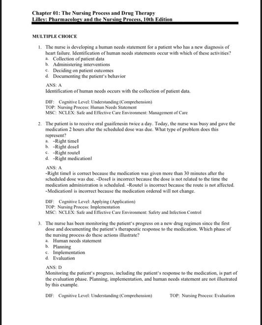 Test Bank Pharmacology and the Nursing Process 10th Edition by Lilley